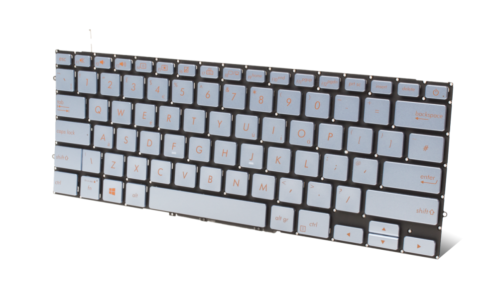 Pod každou klávesou se nachází nůžkový mechanismus, který zajišťuje rovnoměrný stisk tlačítek. Tento mechanismus dodá majiteli větší přesnost, stabilitu a pohodlí při psaní.