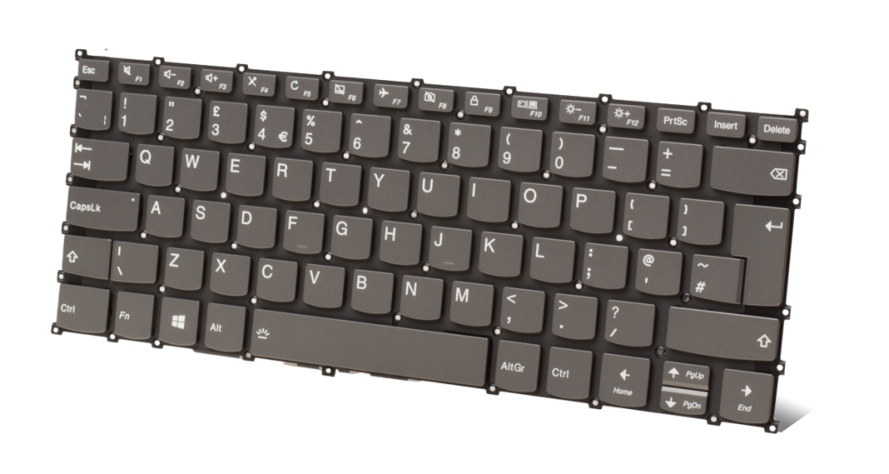 Klávesnice má rozložení kláves QWERTY, kde je prohozen potisk písmena Z za Y. S českým operačním systémem však klávesnice funguje jako QWERTZ. Písmena, číslice i speciální znaky jsou na jednotlivých klávesách natištěné. Klávesnici lze upravit také českými přelepkami, které jsou zdarma ke klávesnici přidávány. Klávesnice s UK layoutem se vyznamenávají vysokou klávesou enter. Klávesnice mají ve většině případů dvouřádkový enter, pravidlem to však není.